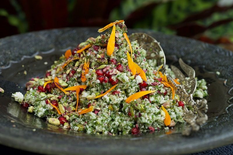 Cauliflower and Fennel Rice Salad with Pistachio Crumble, Creamy Feta and Pomegranate