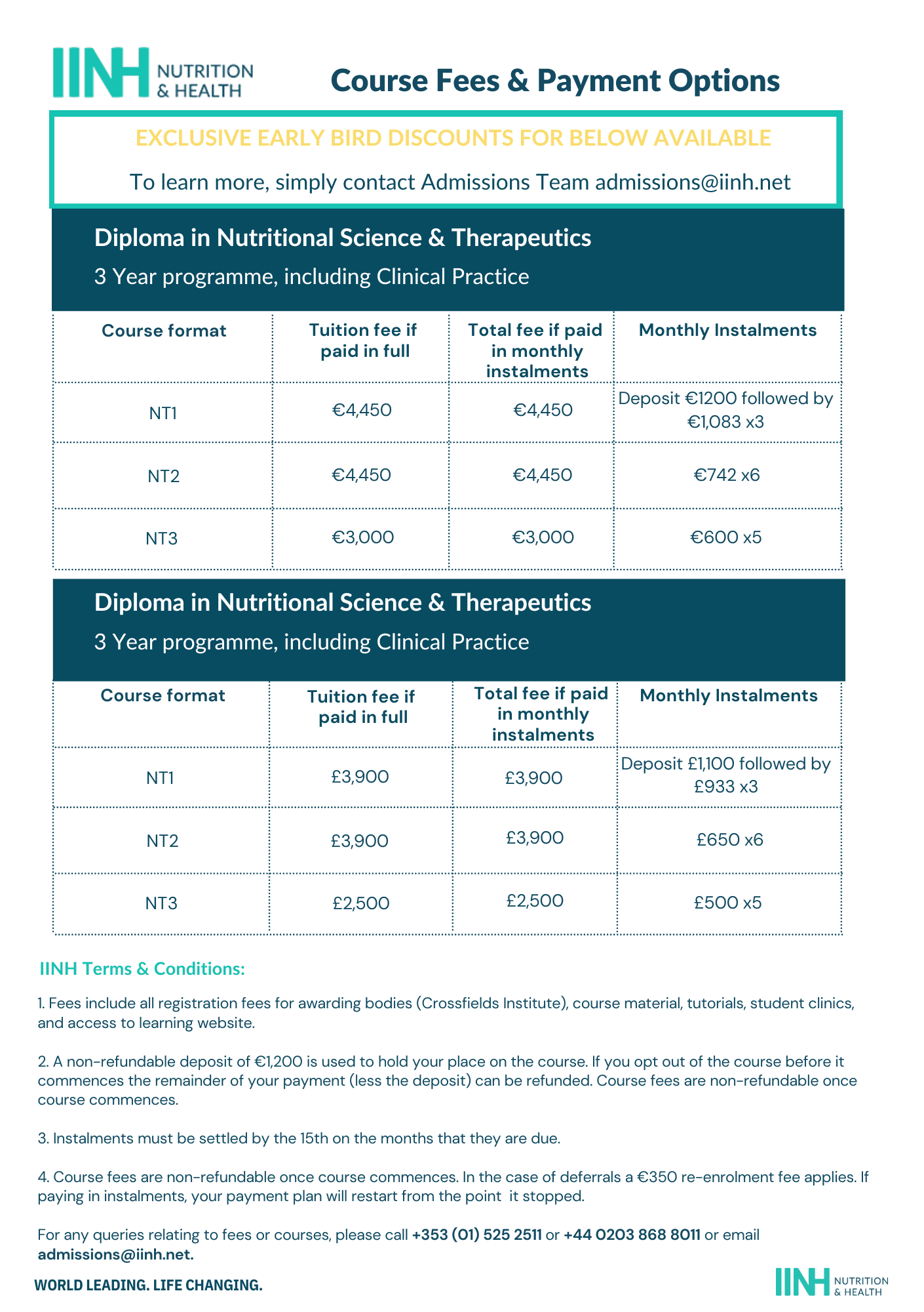 Form below for August 2026. Contact our Admissions Team at admissions@iinh.net to check for a discounted place.